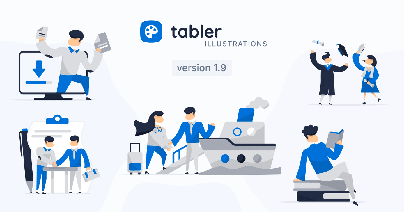 The 1.10 version of Tabler Illustrations introduces five new illustrations, each designed to enhance your projects with unique and engaging visuals. The new additions are:
