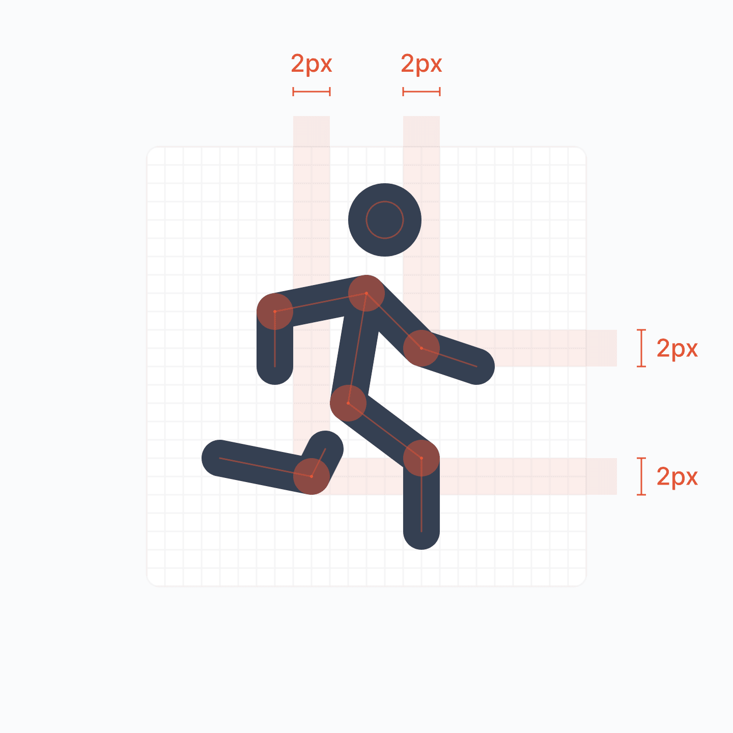 Distinct elements within icons must maintain a 2-pixel spacing between them to ensure clarity and visual separation, enhancing the icon’s legibility and aesthetic appeal.