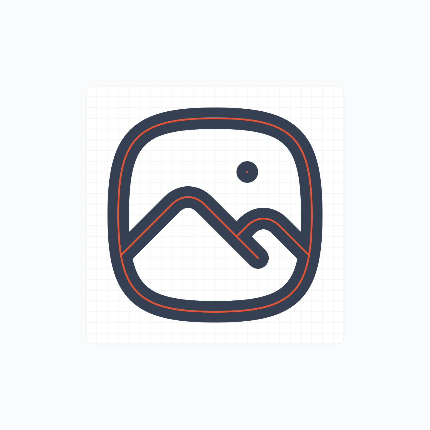 Shapes within icons, like rectangles, must incorporate a 2-pixel border radius to soften corners, promoting a cohesive and modern aesthetic throughout the icon set.